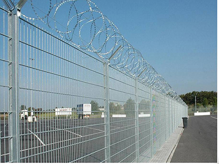 機(jī)場隔離網(wǎng)又稱作“Y型安全防御護(hù)網(wǎng)”,機(jī)場護(hù)欄網(wǎng)是由V型支架立柱,加強(qiáng)型焊接片網(wǎng),安全防盜連接件和熱鍍鋅刀片刺籠組成強(qiáng)度和安全防御性級別很高。近年來,被廣泛應(yīng)用在機(jī)場,軍事基地等高安全場所。