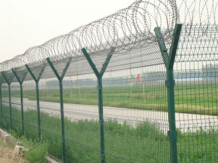 軍事基地防護網外觀尺寸為1700×3000mm(立柱中心距),邊框采用30×50×2.0mmd的矩管制成,網片由直徑為4mm的鋼絲焊接,網孔75×150mm,立柱用40×40×2.5mm的方管制成。立柱、網片鏈接板采用90°折角,厚度4mm鋼板制成,金屬網應進行鍍鋅后防腐浸塑處理,防護柵欄安裝做到“嚴、直、齊、美”,線路封閉嚴實,不留間隙;沿線路方向順直,不忽遠忽近;防護柵欄頂端和下端縱向過渡平滑整齊,不忽高忽低;要求整體效果美觀,避免給人凌亂感覺。安裝前應平整場地,柵欄底部距離地面高度按10cm設計,不滿足時,應進行回填處理。